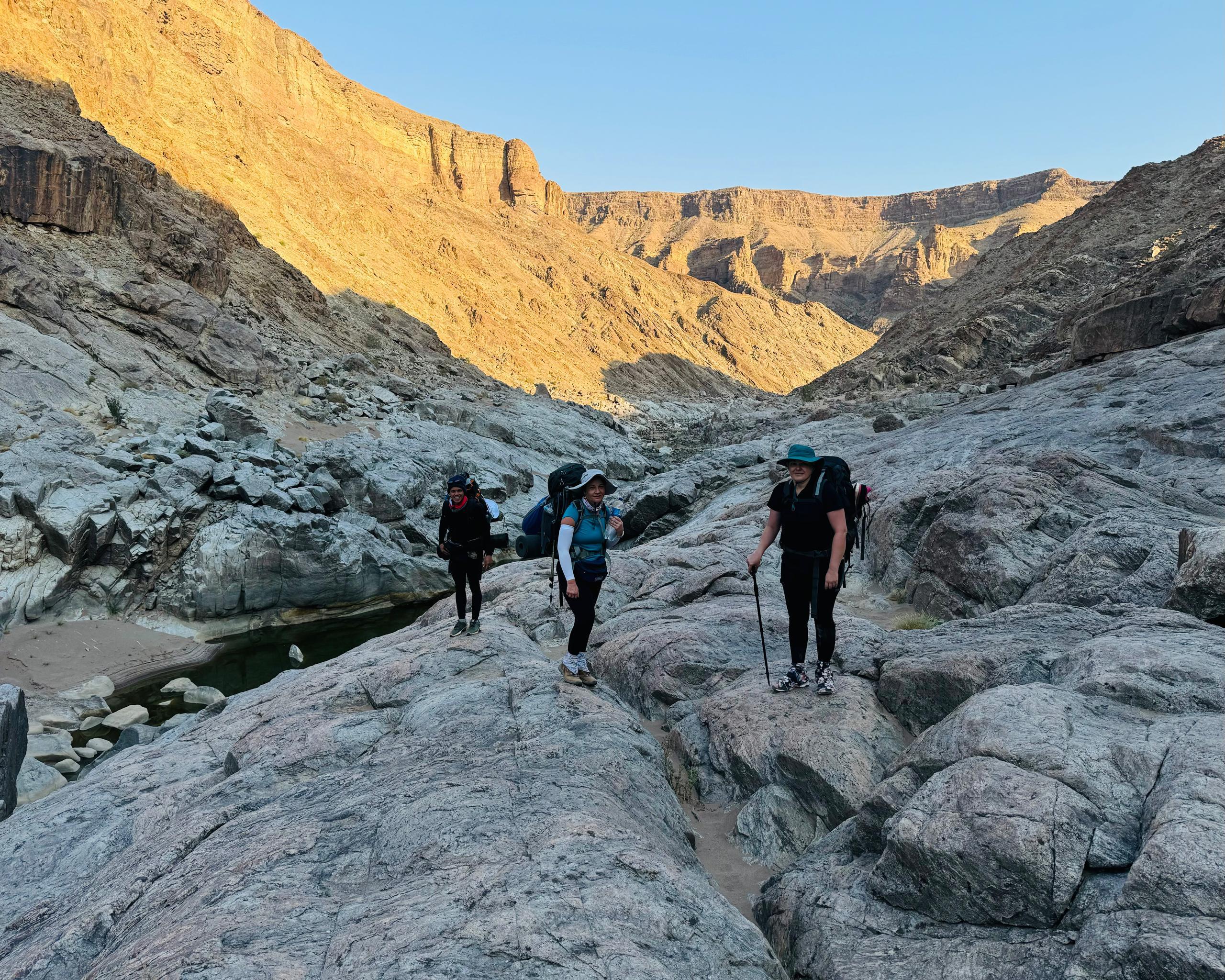 Our adventure kicks off in Windhoek, the gateway to Namibia’s captivating landscapes. From here, we set our sights on the magnificent Fish River Canyon. Spanning over 87 kilometers for Hiking, the canyon offers dramatic cliffs and diverse ecosystems, making it a hiker’s paradise. We will immerse ourselves in the breathtaking surroundings as we embark on a five-night trek, allowing us to fully appreciate the canyon’s awe-inspiring beauty while creating unforgettable memories along the way.